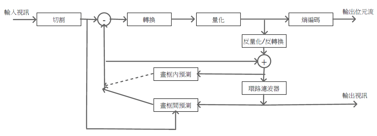 圖1是H.266的基本流程方塊圖,本文將按流程的順序依序進行重點介紹,其中為了讓主題明顯,所以僅介紹有關亮度(luma)的部分,而忽略涉及色度(chroma)的內容。